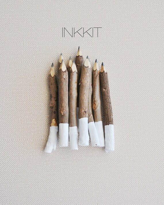 These handcrafted and hand painted twig pencils sets have been made only out of the finest recycled wood. 4" in size. I hand dipped the pencils in white paint to add a little chic.